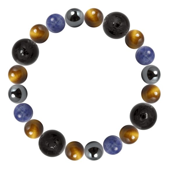 こちらのデザインは、大粒14mmの四神ブラックオニキスに、イエロータイガーアイとソーダライトを組み合わせました。