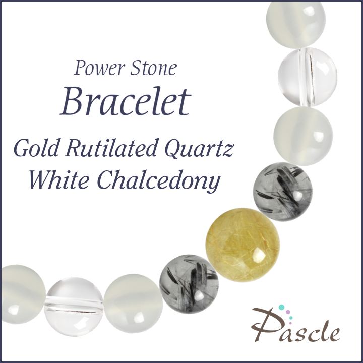 Gold Rutilated Quartz / White Chalcedonyゴールドルチルクォーツ・ホワイトカルセドニー メンズデザインブレスレットパスクルでは、たくさんの種類のストーンを使用して、様々なデザインブレスレットを作成しています。