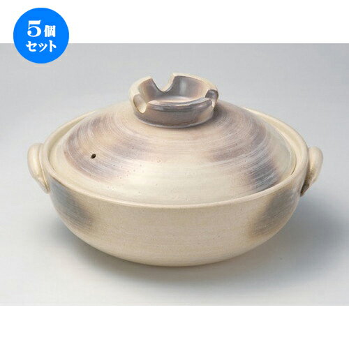 5個セット☆ 萬古焼土鍋 ☆カスミ志野6号鍋 [ 22 x φ19.3 x 12cm 1200g ] 【 料亭 旅館 和食器 飲食店 業務用 鍋パーティー 冬 あったか 宴会 】